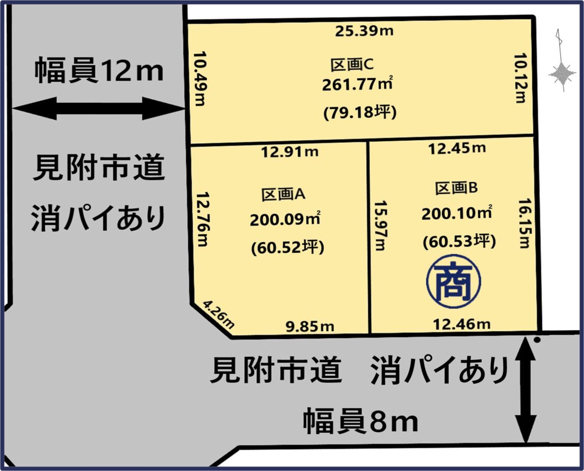 【区画B】面積:200.10㎡/60.53坪 坪単価:¥131,000 販売価格:¥7,929,000 商談中